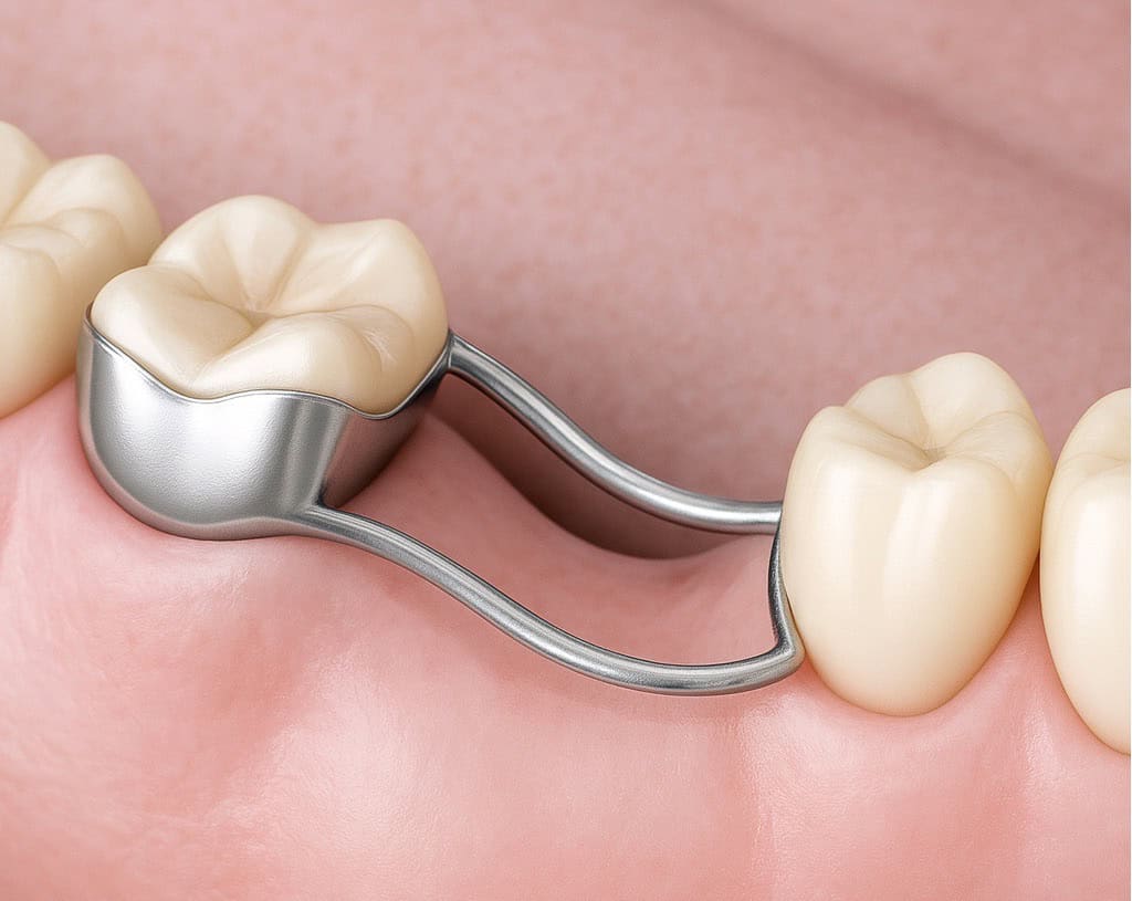 Space maintainers are small dental appliances designed to hold open the gap left by an early lost baby tooth. By preserving this space, they allow the permanent tooth to erupt in its correct position, reducing the likelihood of crowding, misalignment, and the need for complex orthodontics later.